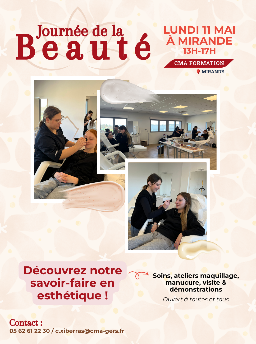 ✨ Soins, ateliers maquillage, manucure, visite & démonstrations. Venez profiter d’un moment détente avec nos apprenties et formatrices !
